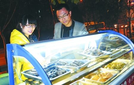 孙文刚和女友在卖卤菜