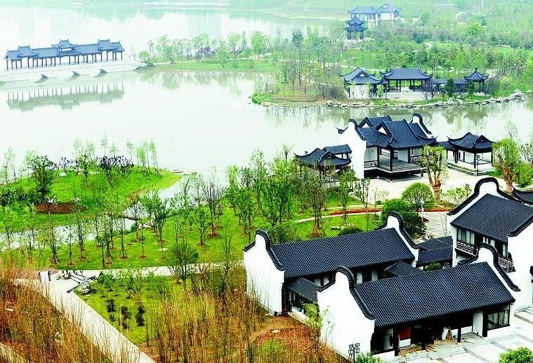 4月23日,沙湖公园历史人文区基本完工,将于5月试开放。沙湖公园2009年开始建设,投资近10亿元,着重打造清末园林艺术家任桐所提出的“沙湖十六景”中的“十景”。(记者 张朋 摄)