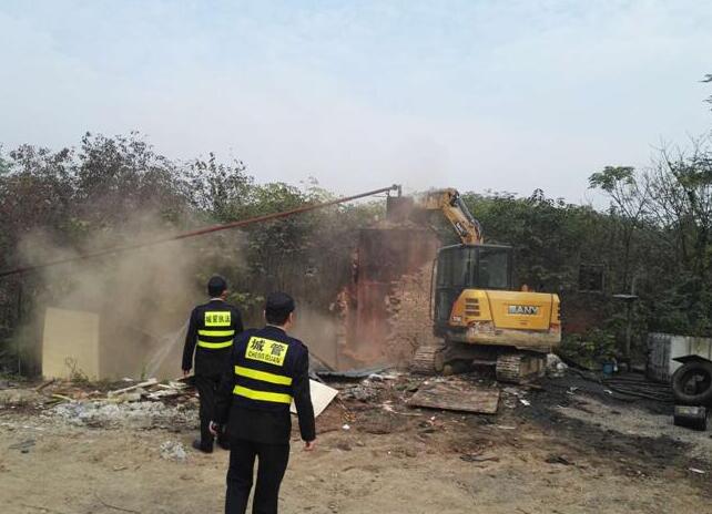 在盘龙城开发区三店村,2家非法炼油作坊长期与执法人员“打游击”,从事非法提炼地沟油,现场环境恶劣,气味扰民严重,附近群众多次投诉,区环境执法人员在调查处理过程中,作坊负责人置若罔闻,屡教不改。联合执法组现场开具依法拆除通知书,组织机械对炼油设施强制性拆除,并责令作坊负责不得再从事非法炼油生产。