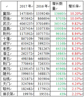 ¾Ýͳ¼Æ£¬Î人ÊеÄÔö³¤ÈËÊý×î¶à£¬Ôö³¤ÊýÁ¿ÅÅÃûÖÐÎ人¡¢ÏåÑô¡¢Ò˲ý¡¢¾£ÖÝ¡¢¶÷ʩλÁÐǰÎåλ£»¶ø°´ÕÕÔö³¤ÂÊÅÅÃû£ºÏåÑô¡¢¶÷Ê©¡¢Î人¡¢Ò˲ý¡¢¾£ÖÝÅÅÔÚǰÎåλ¡£