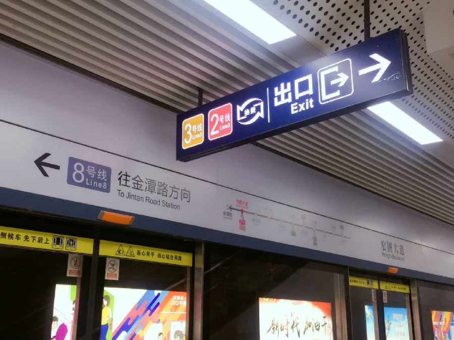 宏图大道站为8号线一期、轨道交通3号线、机场线换乘站,成为武汉地铁线网首个实现三线换乘的车站。3号线和机场线是同站厅换乘,即一个站厅两个站台,乘客看清标识很方便抵达;8号线与3号线、机场线为通道换乘,乘客步行通过换乘通道仅需2分钟。