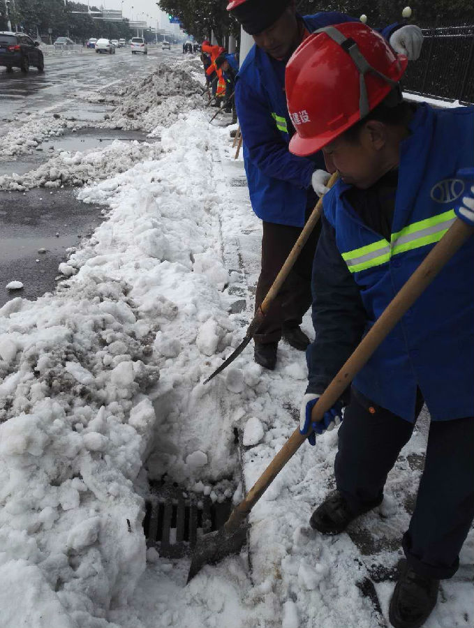 为应对低温雨雪天气,武汉市中心城区排水工作人员将进一步加强巡查,严格落实管网设施、井盖维护防冻除冰应对,严格执行24小时值班制度,保障辖区主次干道无渍水,道路通畅。