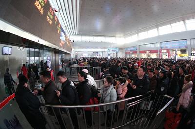 武昌火车站迎来春运第一天,旅客有序检票上车。本报记者 吴薇 摄