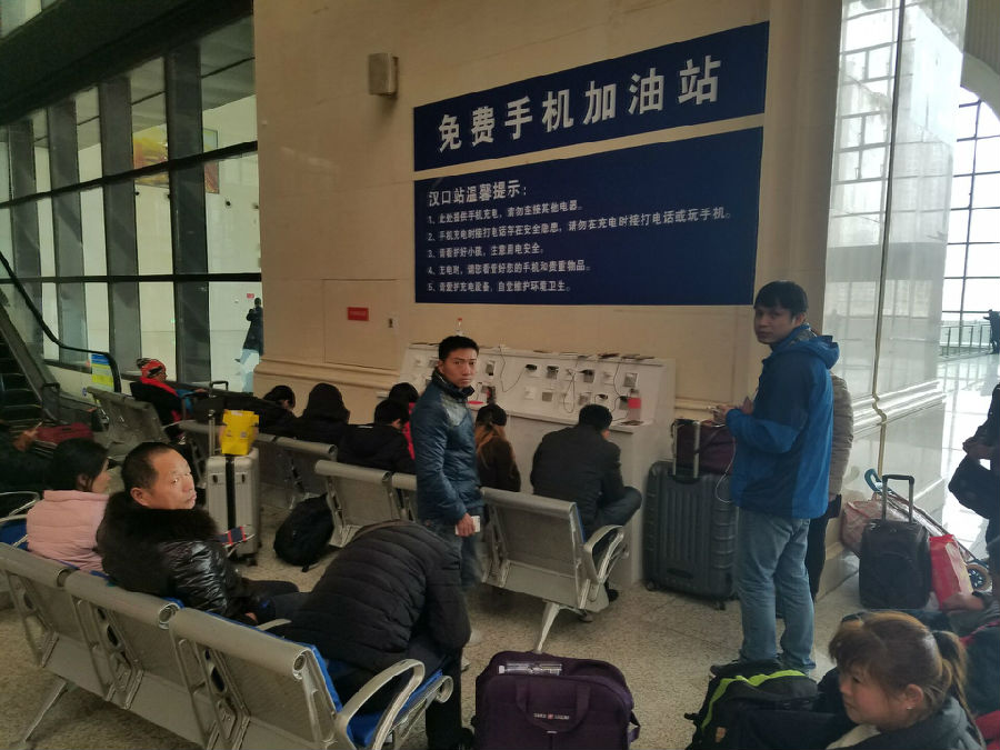 长江商报讯 ( 记者 熊辉 通讯员 宗帅 梁超 )“‘手机加油站’不再为手机断电与亲友失联担忧。”,“有个便民用餐台,可以大大方方坐在桌前吃碗泡面。”,“中转换成候车区,不但解决了进出站重复检票的麻烦,也让我们的候车换乘更便捷。”上午十点,记者走进汉口火车站候车采访发现,车站候车区南厅,及出站口,设置的“手机加油站”、“便民用餐台”和“中转换乘候车区”等系列贴心服务赢得返乡旅客阵阵好评。