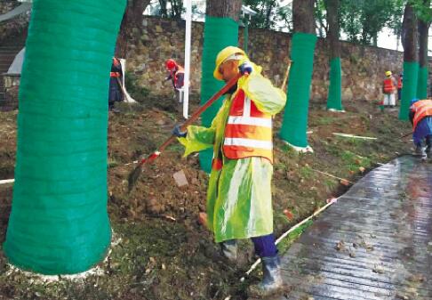 大年初五下午,东湖绿道军运会配套工程施工现场,长江商报记者看到,近200名施工人员分布在几公里的步道上,在泥泞的土地中,工人们把除去的杂草和垃圾装在绿色布袋中。
