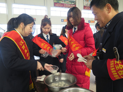 3月2日,阴历正月十五,是传统佳节元宵节。武汉局集团公司汉西车务段各客运站在当天举行了为旅客送汤圆送祝福活动,让人在旅途的乘客如在家里一样,能够吃到香甜可口的汤圆,感受到铁路人带来的浓浓的家的氛围和冬日暖暖的温情。