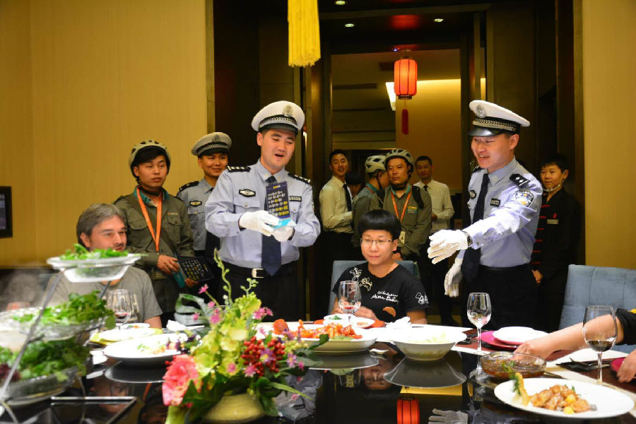 Î人½»¾¯½ø¾ÆµêͶ·Å¾Æ¼ÝÐû´«×ÀÅÆ¡£