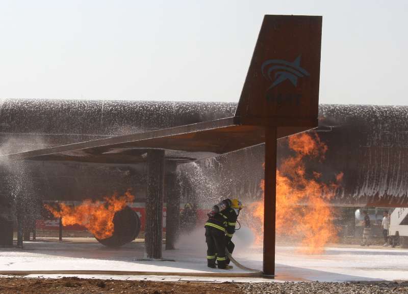 武汉天河机场航空器消防救援真火实训系统是我国首套以737-800为原型的消防灭火救援模拟器,位于天河机场消防救护支队训练场,占地约5500平方米,能够真实模拟航空器火灾特点,为消防员提供灭火救援训练环境。
