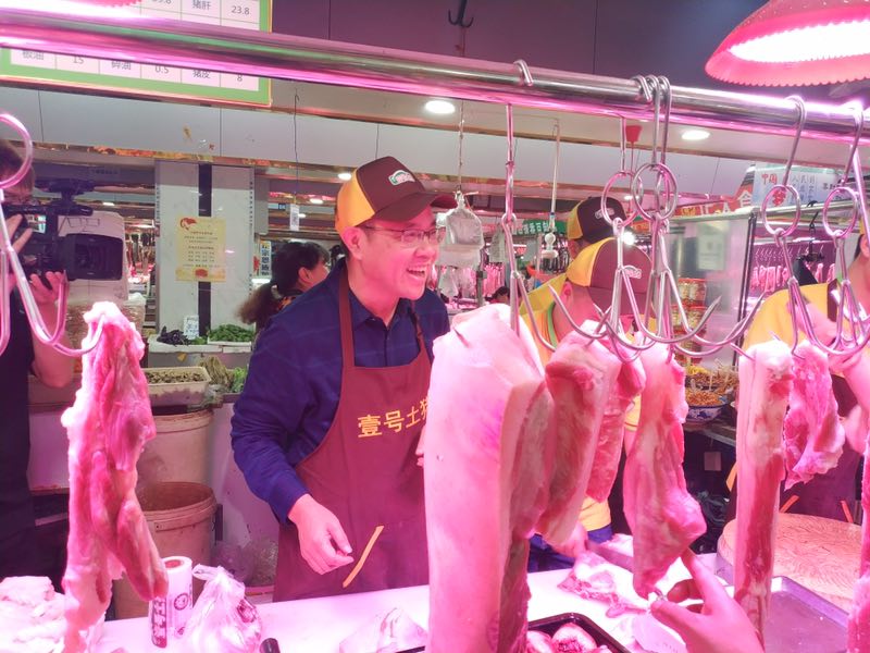 “北大才子武汉卖土猪”,在大成市场到处可见这样的招牌。系着围裙,戴着斯文的眼镜,看上去50岁左右的陈生手持分割刀,出现在猪肉案板前娴熟地为消费者挑选猪肉。