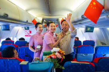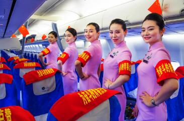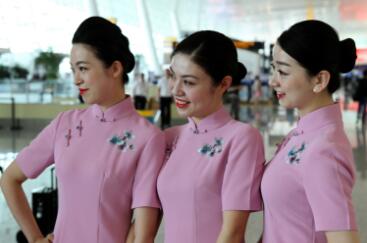 5月4日上午10时,在武汉天河机场T3航站楼,南航湖北分公司9名来自全国青年文明号“楚韵”师范组的靓丽空姐和着青春动感的节拍,开启了五四青年节的青春“快闪”活动。随着音乐响起,原本扮作路人甲的姑娘们迅速进入状态,脱掉外套,露出南航的最美的空勤职业旗袍装。粉色的霓裳,打破了航站楼原有的寂静。旅客们纷纷驻足,更有小朋友跟着扭起了快乐的舞步,大家拿起相机开启了“自拍模式”,与南航空姐一起舞动。