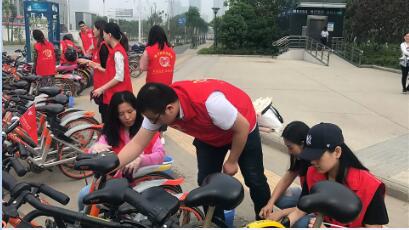 此次快闪活动是由南航股份分公司发起的。据悉,同一时间,多家南航直属分子公司在全国各地的机场一起上演各种形式的快闪活动。为迎“五•四”青年节到来,南航湖北分公司还在部分航班上开展了“五•四”主题机上活动,并组织15名南航青年志愿者,带上抹布、水桶等工具,来到公司驻地周边长港路、杨汊湖等地铁站的各个出口,整理和清洁散落在地铁口公共区域的大量共享单车。美化家园,让“武汉每天都不一样”。(南鄂宣 摄影报道)