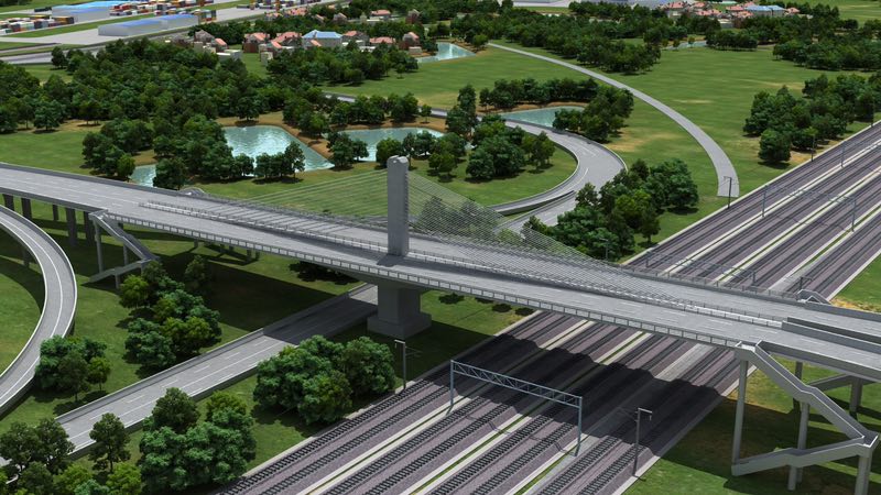 “滨湖路延长线新十公路至石道线段位于武汉市黄陂区汉口北商贸物流枢纽区,西起已建成的新十公路,东至石道线(原318国道),全长约1.98公里。”中交二航局副局长杨志刚说,该路段设计等级为双向6车道、时速60公里的城市主干道,道路沿线还设置非机动车道和人行道,以及完善的交通安全设施和道路市政管线。项目概算投资约7.27亿元,其中建安费约5.3亿元,建设期2年,主要建设内容涵盖道路工程、交通工程、桥梁工程、给排水工程、照明工程、景观绿化工程等,其中桥梁工程包含跨京广铁路的转体矮塔斜拉桥及跨滠口货场连接线的转体T构桥,工程结构复杂,施工组织难度大。