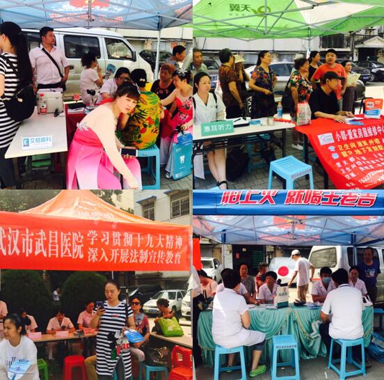 活动当天,武汉市东湖医院、武汉市武昌医院、艾格眼科医院、武汉东大中医肛肠医院、德韩口腔医院、京都结石病医院、惠耳听力检测、新彩美居家皮具护理、李文锁城、小郭爱家房屋维修、中医梁传华、合和大唐沐足、中国人民保险赠送礼物、903军校教育解决孩子在生活学习中的困难和坏脾气,提供儿童教育咨询服务等为社区居民带来多项便民服务。