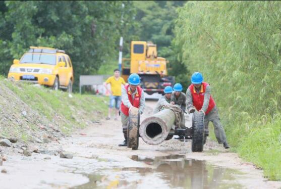( 5日,武汉供电人员在黄陂区大余湾紧急抢修10千伏线路倒杆 通讯员 朱长江)