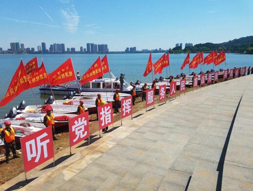 长江商报讯( 记者 熊辉 通讯员 王方) 18日上午,湖北省消防总队在咸宁市嘉鱼县三湖连江水库举行纪念98抗洪20周年暨跨区域应急救援实战拉动演练,提振官兵精气神,全力做好防大汛、抢大险、救大灾的各项准备工作。