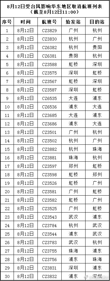 长江商报讯(记者 吴婷 通讯员 沈蕾)受台风“摩羯”影响,截至8月12日11:00,南航新增取消当天在华东地区的30个进出港航班。