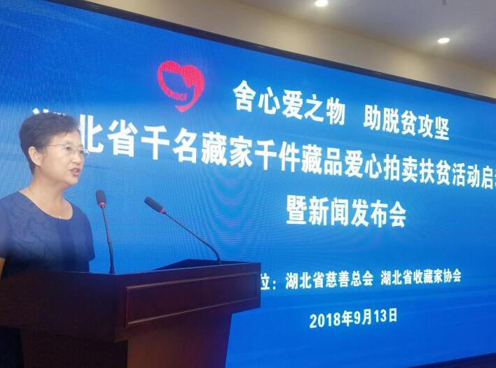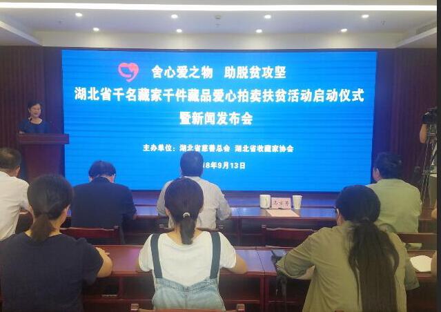 本报讯 ( 记者 熊辉 通讯员 宋丹丹 ) “我们期待更多爱心藏家捐献有价值的藏品进行拍卖,用具全省的脱贫攻坚。”9月13日上午,湖北省慈善总会、湖北省收藏家协会启动“舍心爱之物 助脱贫攻坚”——湖北省千名藏家千件藏品爱心拍卖扶贫活动。省慈善总会副会长马京芳、省收藏家协会执行主席杨郧生、秘书长王运明及部分鉴定专家、爱心藏家代表向社会呼吁,期望更多的爱心人士通过捐赠藏品参与拍卖的方式加入到全省的脱贫攻坚队伍中。