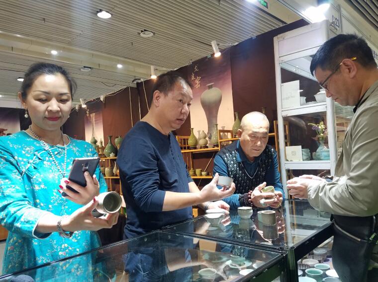 “刚入门的茶友可选择一两百元的主人杯,资深茶友可选择大师主人杯。”浙江龙泉窑青林轩负责人谢建林带来的龙泉青瓷吸引着众多热爱茶器的茶友,谢建林则因人而异推介他们选择适合自己的茶器。