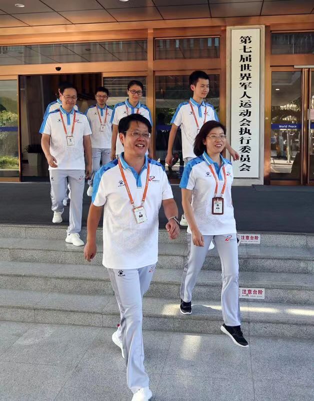 长江商报讯(记者周舜尧 通讯员万建辉 刘大玉)9月21日是周末,武汉军运会举行第一次全员模拟赛时演练,工作人员统一穿上“江潮蓝”工作制服,早上6点50分前就到岗了。竞赛部桂雨晨与同事们穿上“江潮蓝”,精神为之一振,上班前特地在执委会大厅前合影,然后把照片分享到微信朋友圈,并留言“活力四射的蓝色军运宝宝们”。