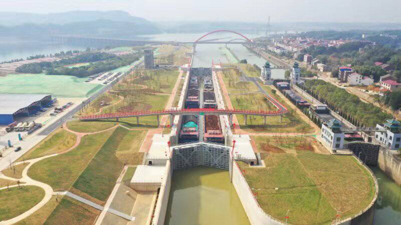 长江商报讯 ( 记者 熊辉 通讯员 隋业辉汪俊 吴相雅)今日上午(27)日上午,随着6艘载满集装箱、煤矿及散货的两千吨级船舶,由湘江下游方向驶来,依次顺利通过大源渡航电枢纽二线船闸,首次试通航的成功完成,标志着在汉央企中交二航局参与建设的湘江二级航道二期工程,大源渡航电枢纽二线船闸全面建成通航,这也是湖南省目前在建投资规模最大的水运建设项目。