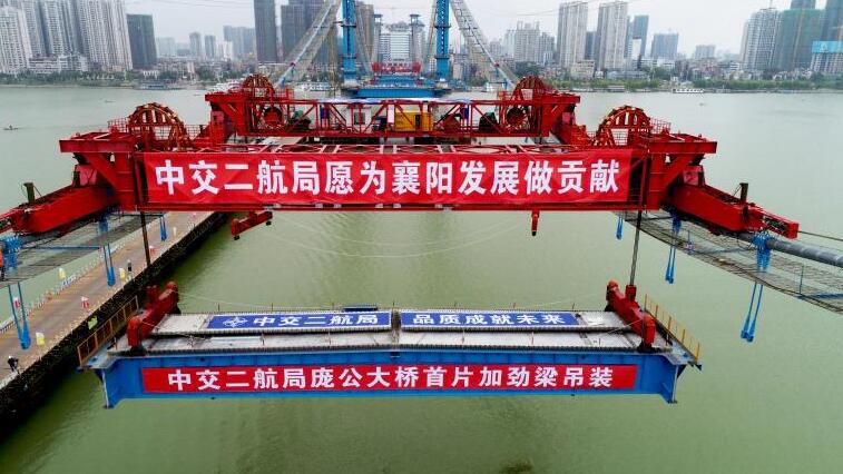 长江商报讯(记者 熊辉 通讯员 陈嘉伦 葛利龙 刘浪 )10月9日上午,由中交二航局承建的襄阳庞公大桥主桥加劲梁顺利完成首片吊装,标志着汉江首座三塔悬索桥进入关键的主桥架梁施工新阶段,预计今年年底实现全桥贯通。