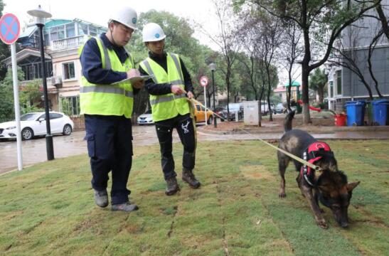 据训导员王师傅介绍,当地下的燃气管道发生漏气时,由于埋地较深,以往巡线工作人员需要每隔一段距离进行打孔检测,而犬类的嗅觉灵敏度是人类的一百万倍,相较燃气检测仪有更高的灵敏度,可以更快、更有效的嗅探到天然气所附带的四氢噻吩(城市煤气、天然气中的警告剂)味道,随后根据刨挖、趴卧、坐立等形式进行示警。