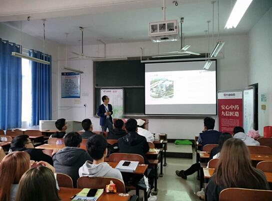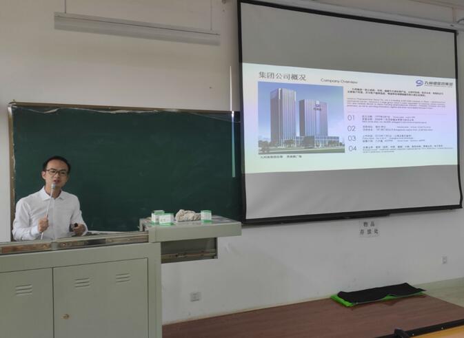 九信中药有限公司中药学院院长吴爱林有10年人力资源管理工作经验,专注于医药行业人才引进、培养、训练,他为大学生们详细介绍了九州通医药集团概况,同时系统阐述了九信中药秉承初心,以良心做人做事、匠心做产品、让社会与消费者安心的品牌理念。
