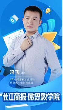 微思敦学院第二堂课由微思敦讲师冯飞进行授课,冯飞有着五年移动营销从业经验,擅长信息流广告资深运营。