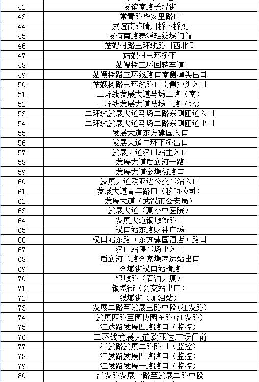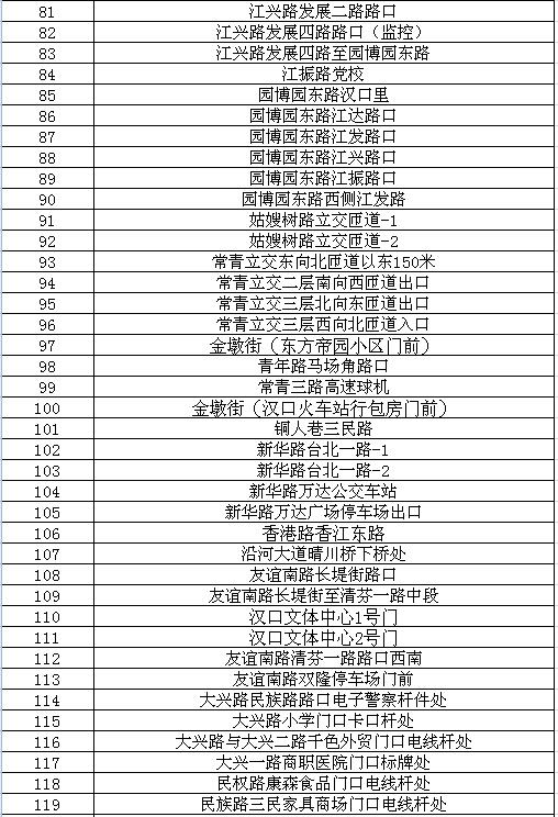 长江商报讯(记者 李璟 通讯员 董冠男)为进一步规范机动车停放秩序,提升道路通行效率,提醒广大机动车驾驶员自觉遵守交通法规,确保道路交通有序、安全、畅通,现将江汉区194处“电子警察”设备具体点位予以公布。