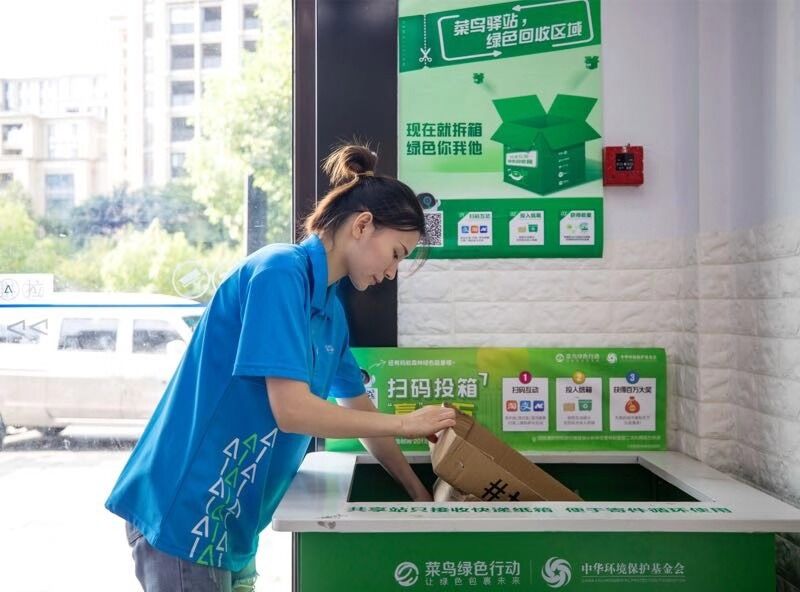 “菜鸟的这个活动形式非常好,鼓励同学们将快递盒放进绿色回收箱,用于后续寄件使用,从而实现快递纸箱循环利用,达到保护生态环境、践行绿色生活的目的”,北京市环境保护宣传中心主任张立新表示。