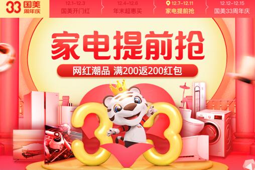12月12日-14日,国美33周年“超级夜市”,线上商城、线下门店共赴一场“巅峰2小时”的盛宴。家装、换新、添置新物件,所有的需求在国美一次满足。