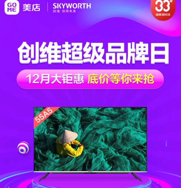国美33周年庆期间,创维超级品牌日也在国美美店同步开启,相比于其他品牌,创维电视没有那么多活动,仅仅采用了价格直降的方式,简单粗暴,直接购买即可。http://gome.cn/5LwGV