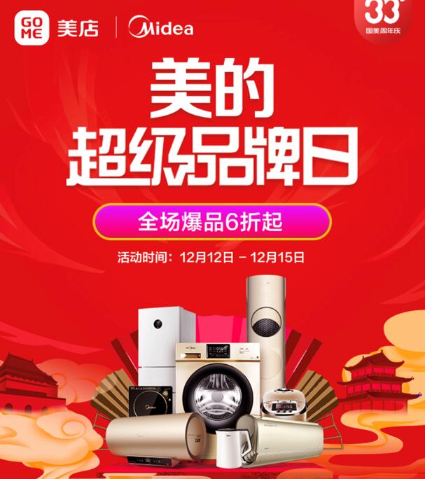 作为多元化家电产品品牌美的,在本次超级品牌日活动中更是给予了10余个品类的数十款产品大幅的优惠力度。12月12日至15日期间,美的爆品,全场6折起,大家电最高直降1000多元,小电器返券更可实现“0元购”,力度空前。http://gome.cn/5LwhV