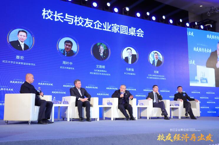 长江企业家论坛举行了主题演讲、校长与校友企业家圆桌会、长江新城推介会、企业融资对接会等多项议程。武汉大学副校长周叶中,九州通集团董事长刘宝林,当代集团董事长艾路明,华工科技董事长马新强等共话“校友经济”,碰撞新经济真知,激荡新时代智慧,分享发展机遇,共同探寻长江经济带高质量发展路径。