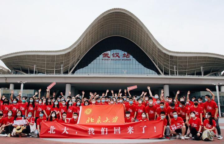长江商报讯记者熊辉通讯员孟立 代能跃 朱梦然)楚云飞渡未名月,万里归舟一片心!6月6日12时10分,101名北京大学湖北籍大学生和12名带队老师满怀喜悦地在武汉站西广场久别重逢。他们欢喜相聚,合影留念。一张张雀跃的笑靥,一双双卖萌的剪刀手,一句句欢心的话语……他们就像一群即将归巢的春燕。