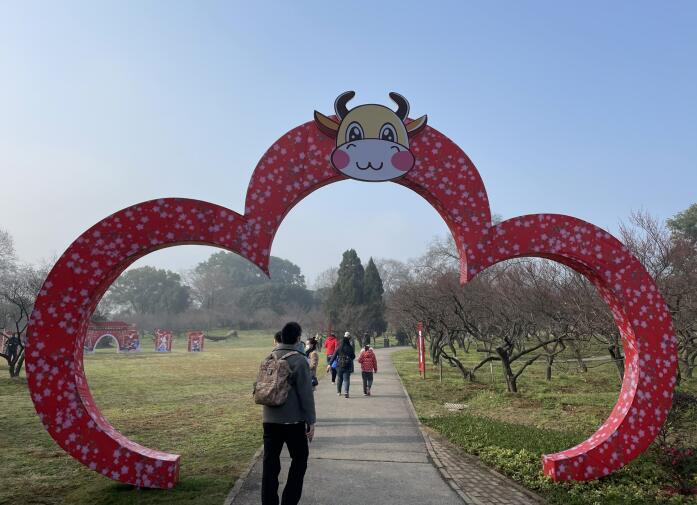 目前东湖梅园内的梅花属于初开,待到春节盛花期,梅园内2万余株盛开的梅花、340余珍贵的梅花品种,200余棵苍劲的古梅,以及多个赏梅文化活动能让游客“梅”开眼笑,也为留在武汉过年的人们送去春的祝福。