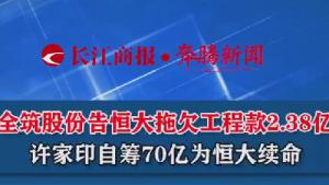 全筑股份告恒大拖欠工程款2.38亿,许家印自筹70亿为恒大续命。